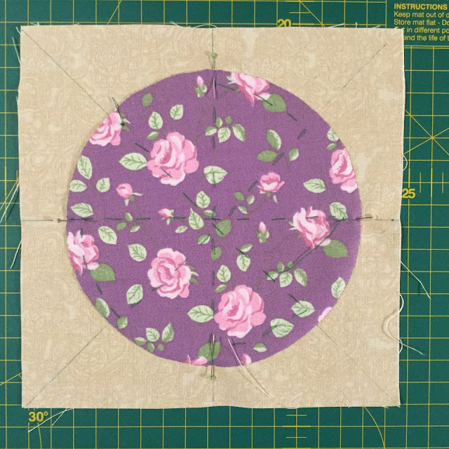 2. На изнанке обколола иголками тот фрагмент рисунка , который буду пришивать. На лицевой стороне в районе иголок наложила ткань, приколола. Убрала иголки на изнанке, они помогли найти границы наложения зелёной ткани.